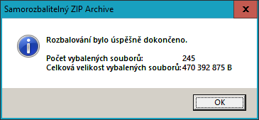 - Oznámení o úspěšném rozbalení souborů, >> zvolte OK