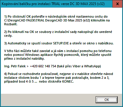 C:\DesignCAD FALEK\TRIAL DesignCAD 3D Max 2025 (v32) na soubor SETUP.EXE. Následně se vás systém zeptá: