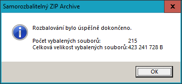 - Oznámení o úspěšném rozbalení souborů, >> zvolte OK