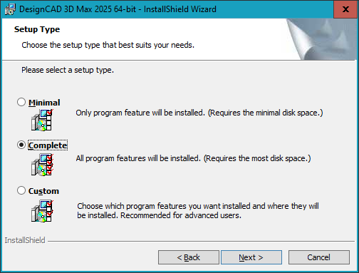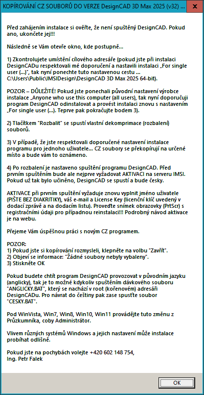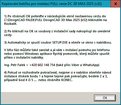C:\DesignCAD FALEK\FULL DesignCAD 3D Max 2025 (v32) na soubor SETUP.EXE. Následně se vás systém zeptá: